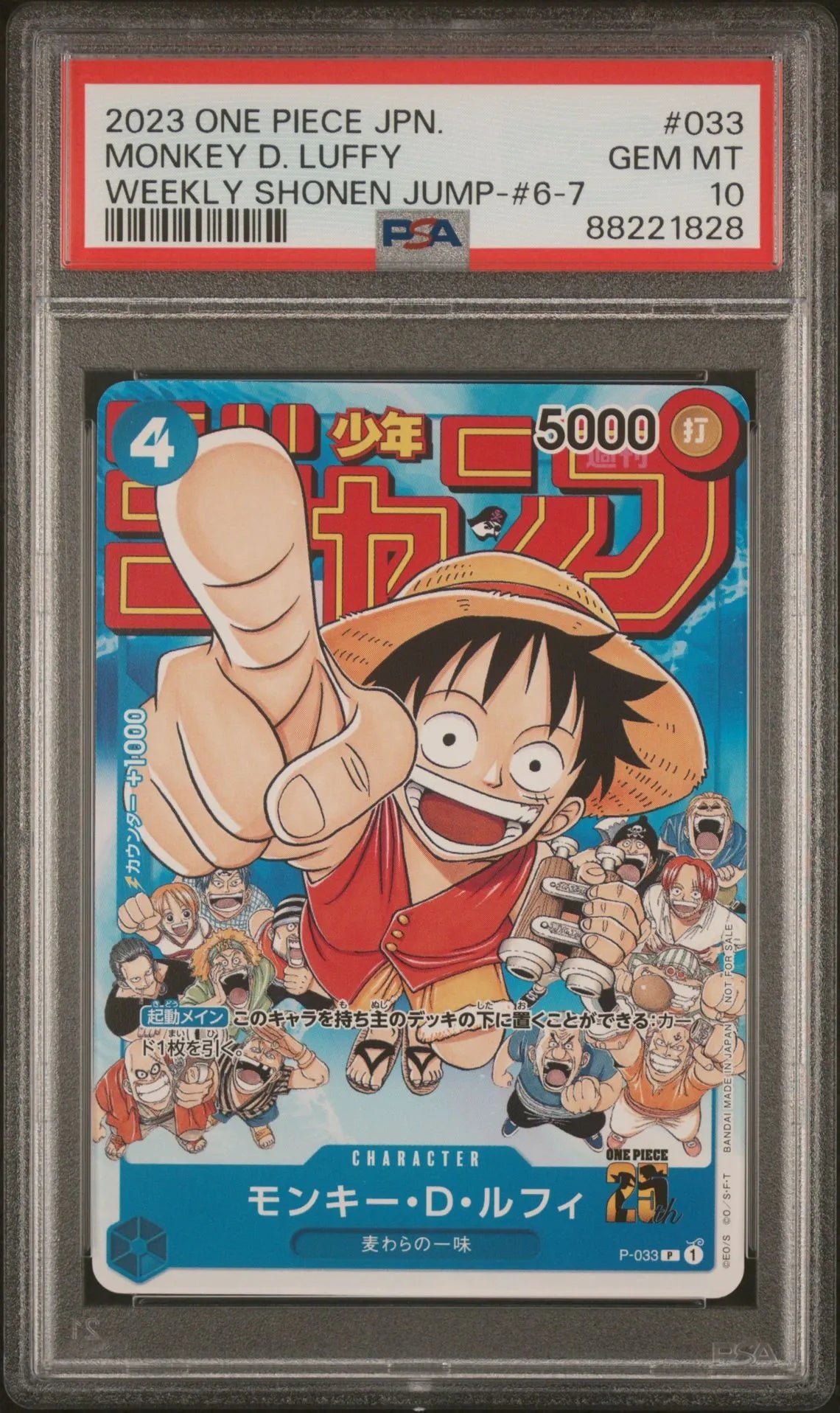 2023 One Piece JPN.: P-033 Monkey D. Luffy (Weekly Shonen Jump 6-7) PSA GEM MT10