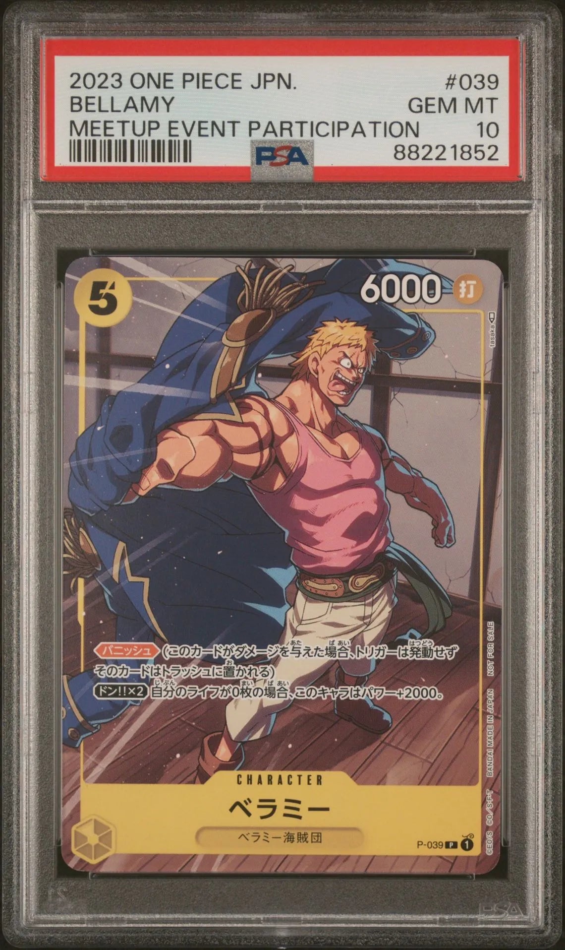 2023 One Piece JPN.: P-039 Bellamy (Meetup Event Participation) PSA GEM MT10ATTENZIONE: Il prodotto viene spedito sigillato in una sleeve per carte gradate marca Beckett Shield. Lo Staff si assicurerà...