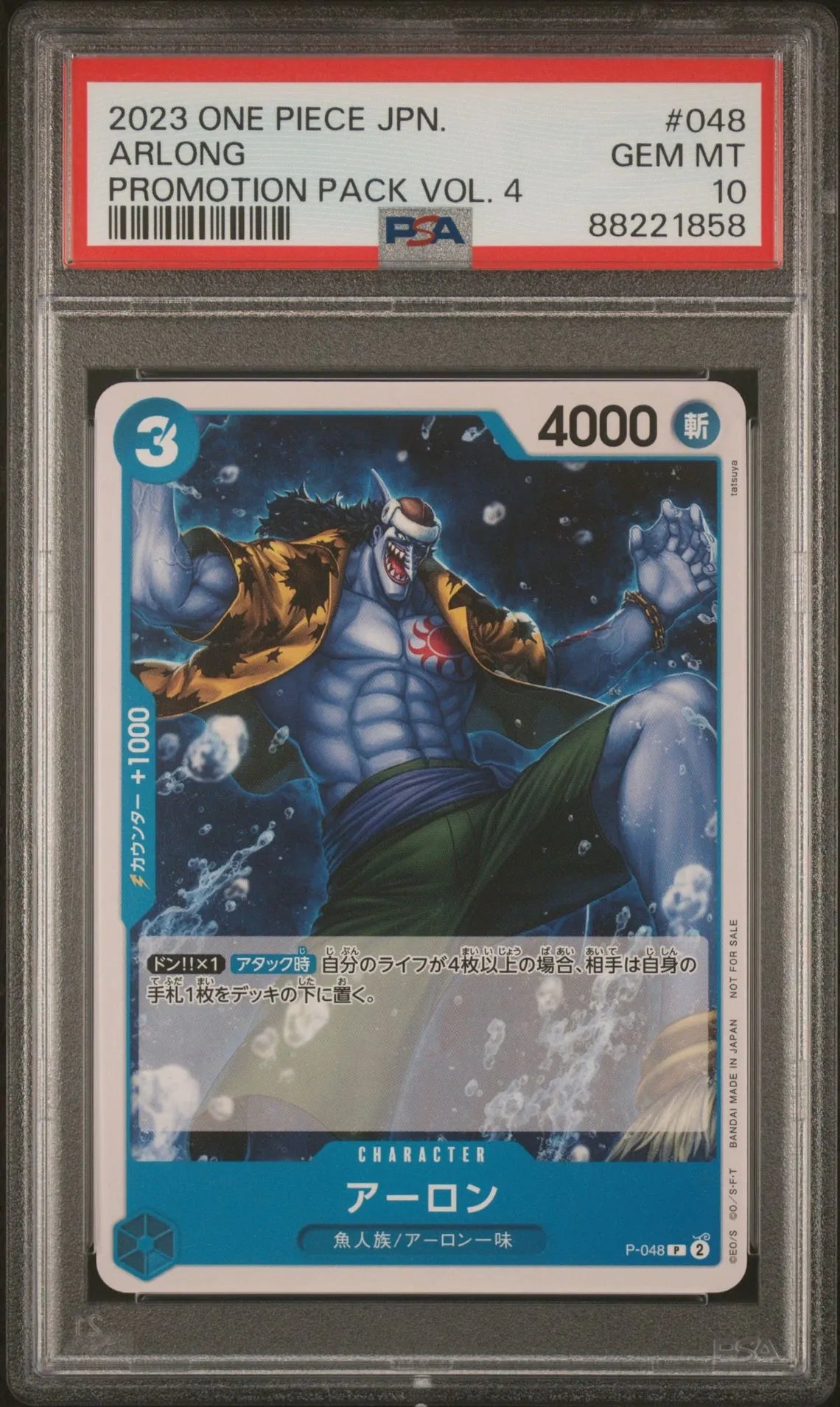 2023 One Piece JPN.: P-048 Arlong (Promotion Pack Vol.4) PSA GEM MT10!!ATTENZIONE: Il prodotto viene spedito sigillato in una sleeve per carte gradate marca Beckett Shield. Lo Staff si assicurerà inoltre di spedire il prodotto adeguatamente protetto ed imballato.