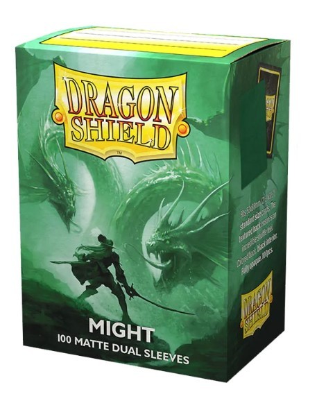 Le Dual Matte sono una nuova linea Dragon Shield dotata un ulteriore strato nero tra il fronte trasparente e il retro colorato. Questo rende la bustina ancora più resistente, e impedisce di vedere il retro della carta attraverso il retro colorato.