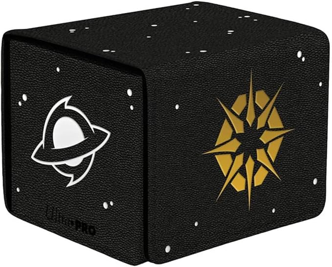 Il porta-mazzo Premium Alcove Edge con stampe interne presenta un esterno in pelle sintetica testurizzata con dettagli laminati localizzati, oltre a vivaci stampe a colori sulla patta interna.È dotato di una resistente chiusura magnetica e di tacche a doppio foro per un facile accesso al mazzo.Questo porta-mazzo può contenere fino a 100 carte di dimensioni standard, con doppia bustina protettiva, utilizzando le bustine protettive Ultra PRO Deck Protector.